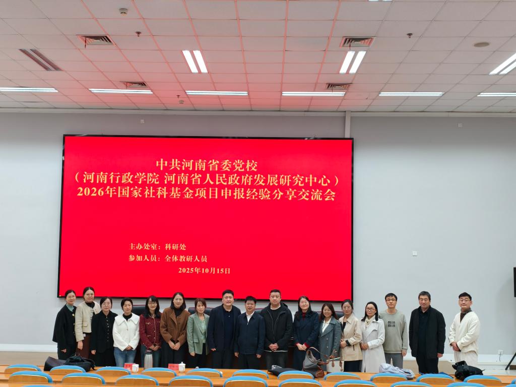 为深入推动学术交流与合作,进一步提升科研骨干教师项目申报能力,11月15日,科研处组织各学院科研骨干教师赴河南省委党校参加国家社科基金项目申报经验分享交流会。